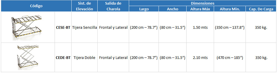 Carro de elevación electro hidráulico con Salida de Charola Lateral y Frontal