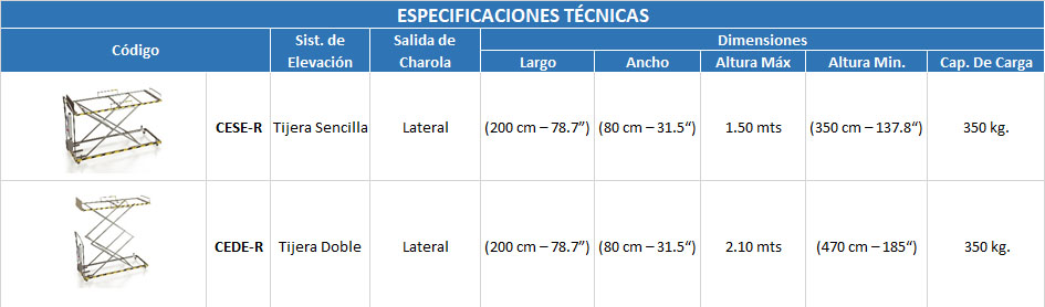 Capacidad de carga: Hasta 350 Kg.